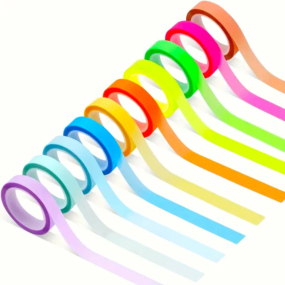 Highlight smarter with these 5 Rolls of Highlighter Tape! Featuring clear, removable macaron-colored labels, this fluorescent marking tape is perfect for reading, studying, and organizing notes. Each roll is 16 feet long for long-lasting use!