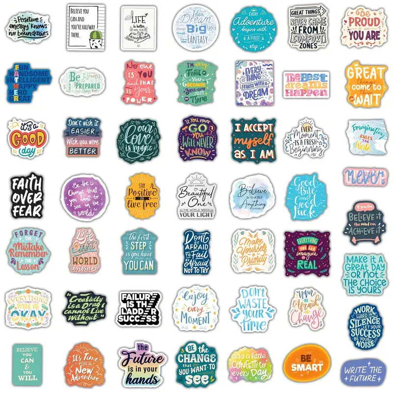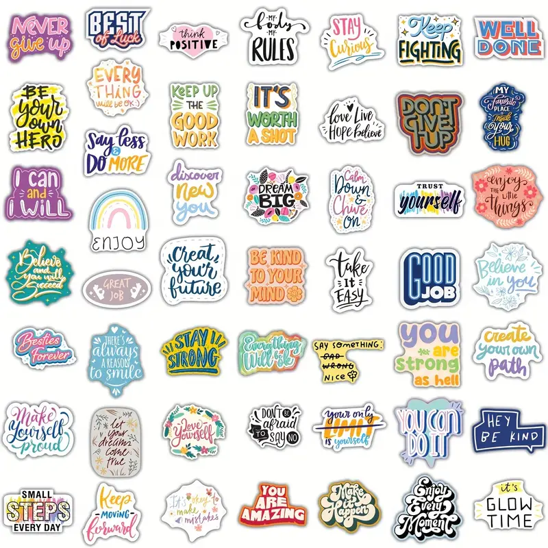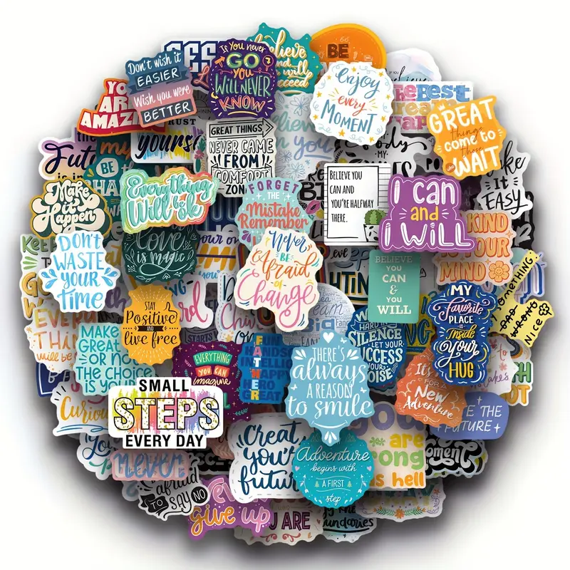 Positivity on repeat! This vibrant vinyl set features 100 uplifting quotes to brighten your mood, gear, and workspace?because a little motivation goes a long way.