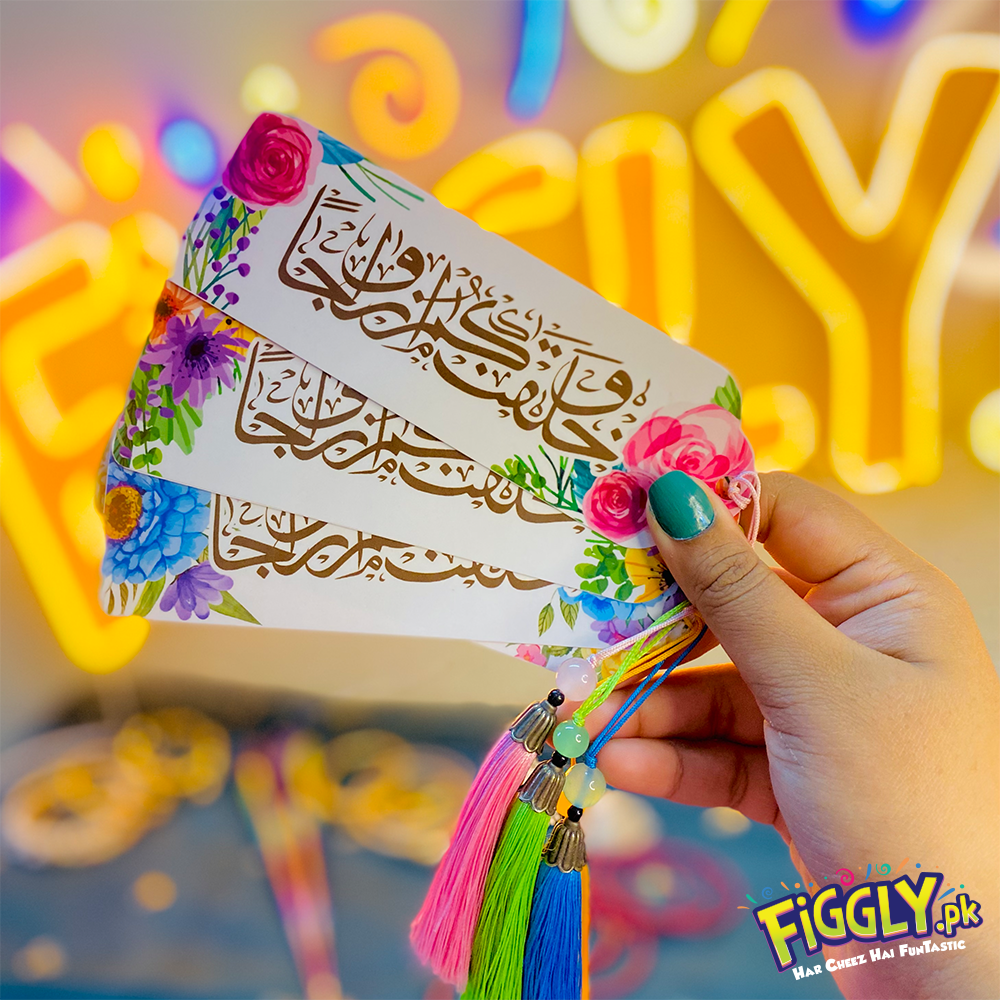 Designed with beautiful calligraphy and meaningful Islamic quotes, this set of 4 bookmarks is perfect for gifting to guests, friends, or newlyweds.